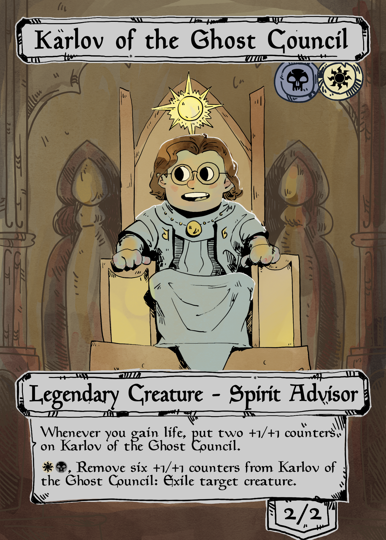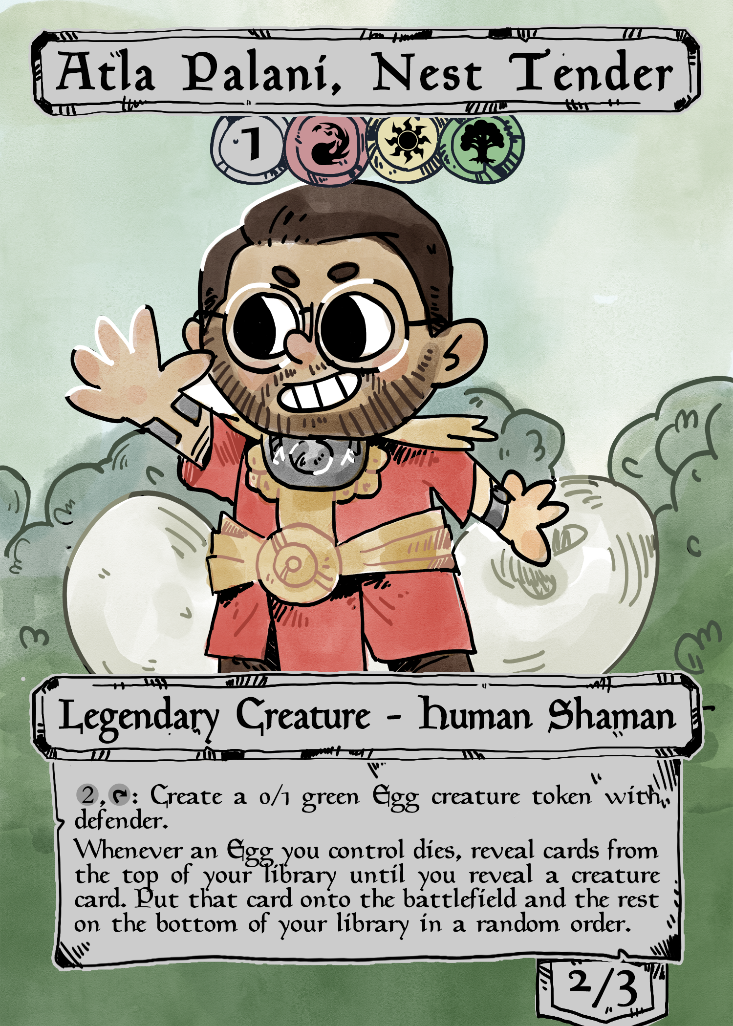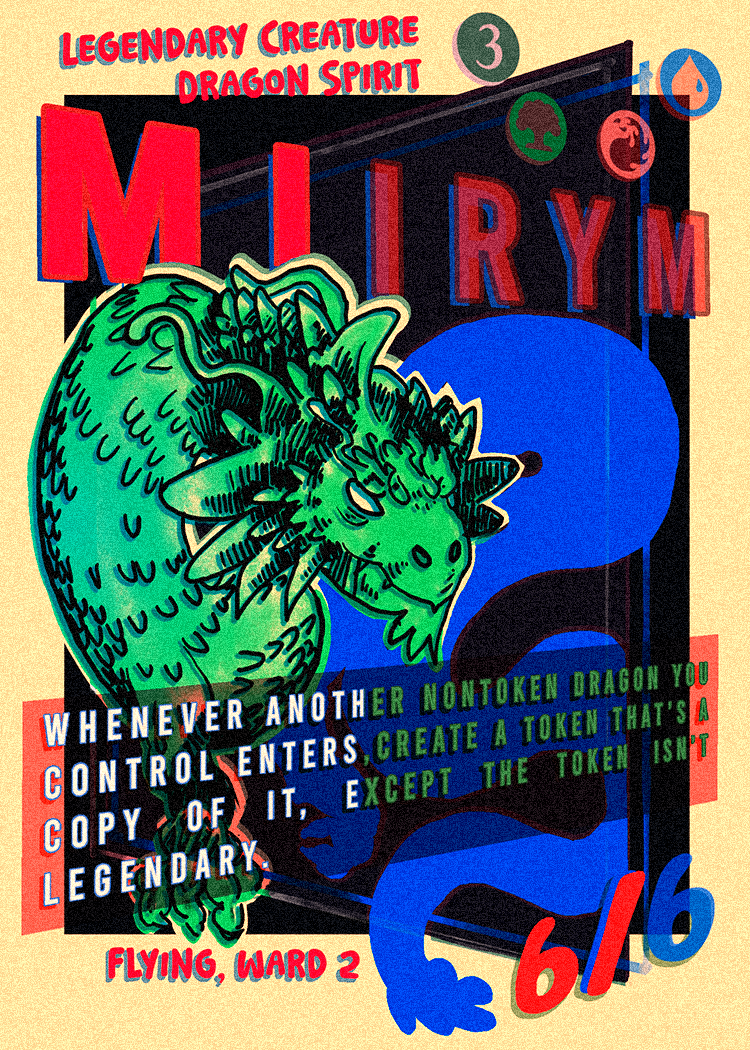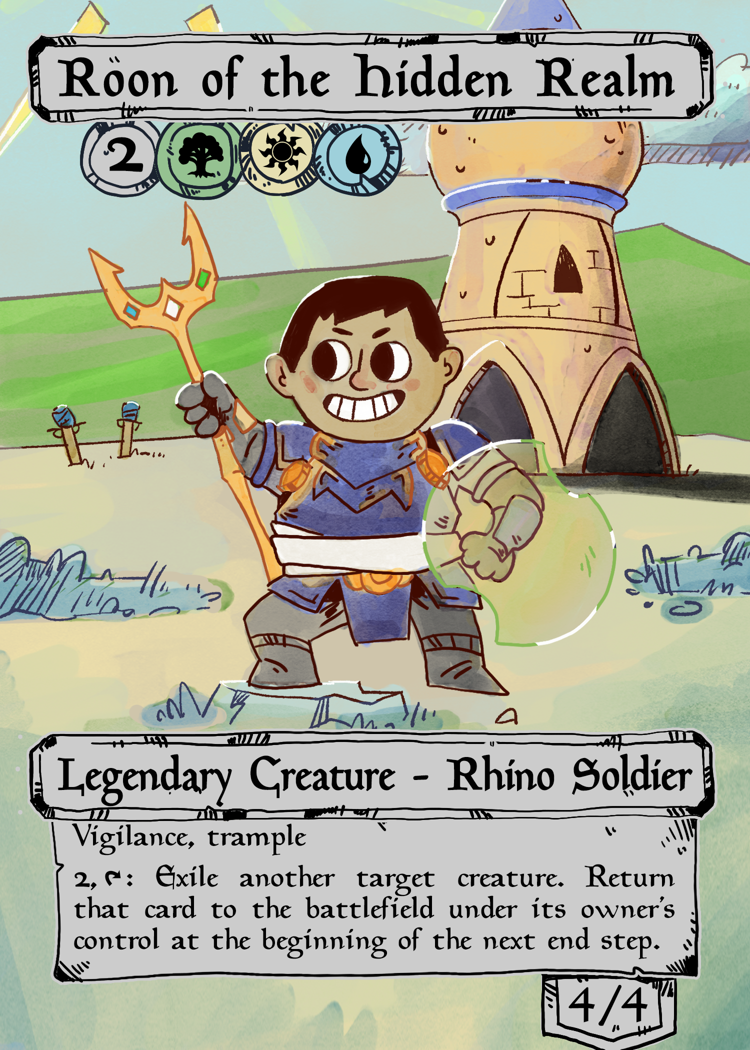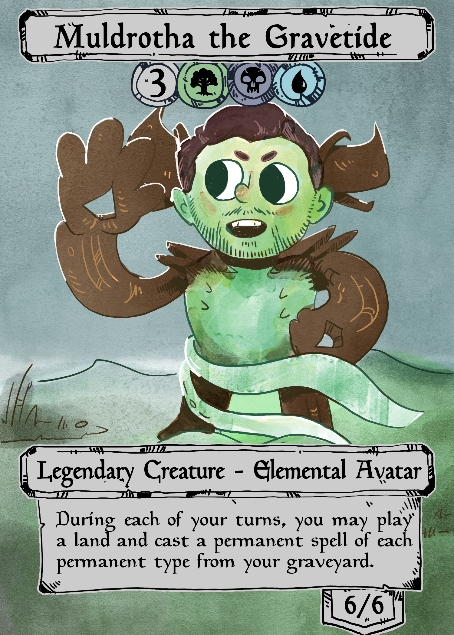 In this project, I leveraged my art skills to create these illustrations of some of my favorite cards and characters from the history of the game. In most of these, I started with thumbnail sketches of different ideas for how I wanted to render these cards, then took them to a linework drawing and colored them in their different styles. However, some of these are modeled after friends, where I have to combine the thumbnail vision with interpretive portraits into my process.